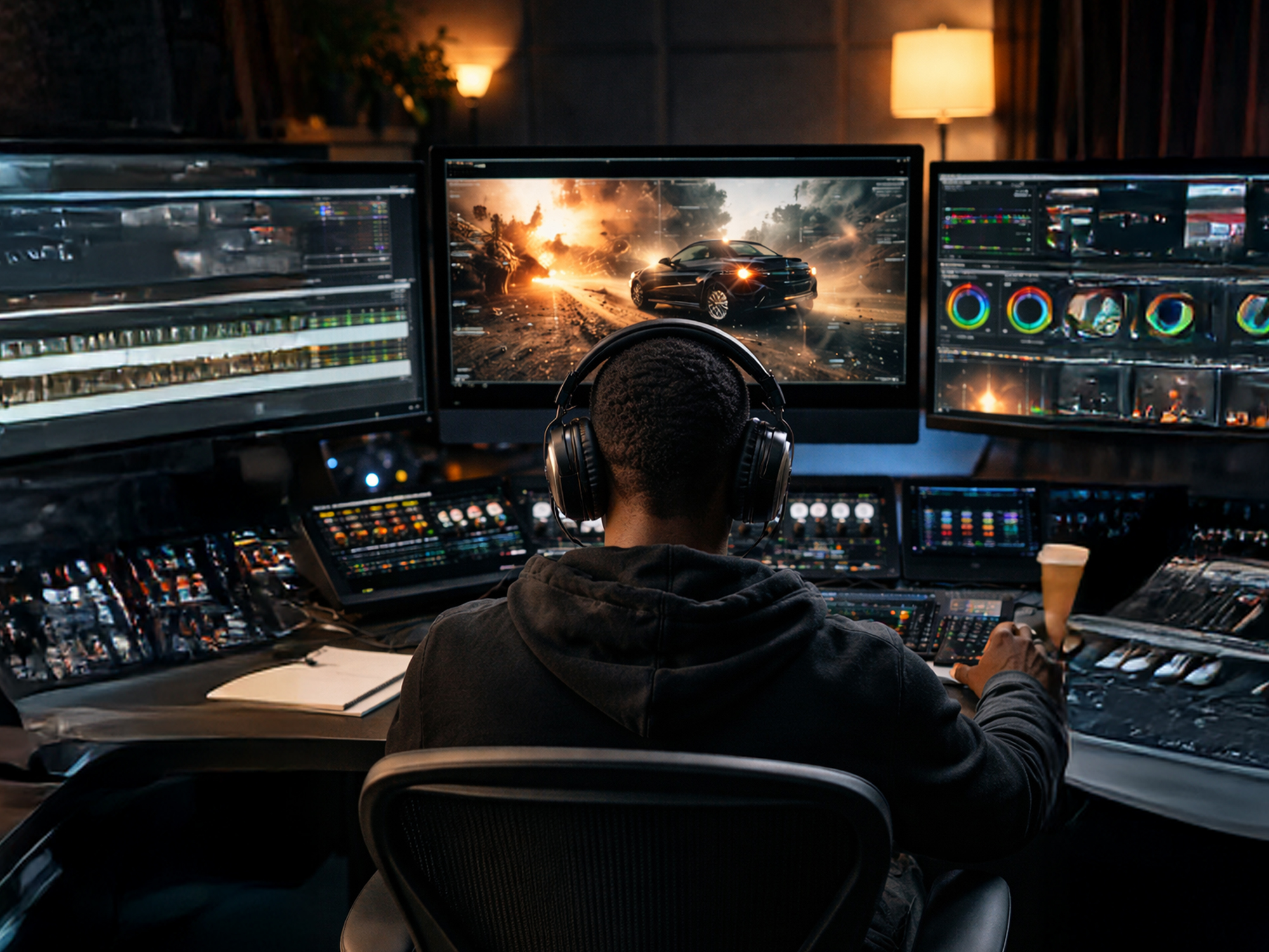 Editing, color grading, sound design, and motion graphics with cinematic polish.
